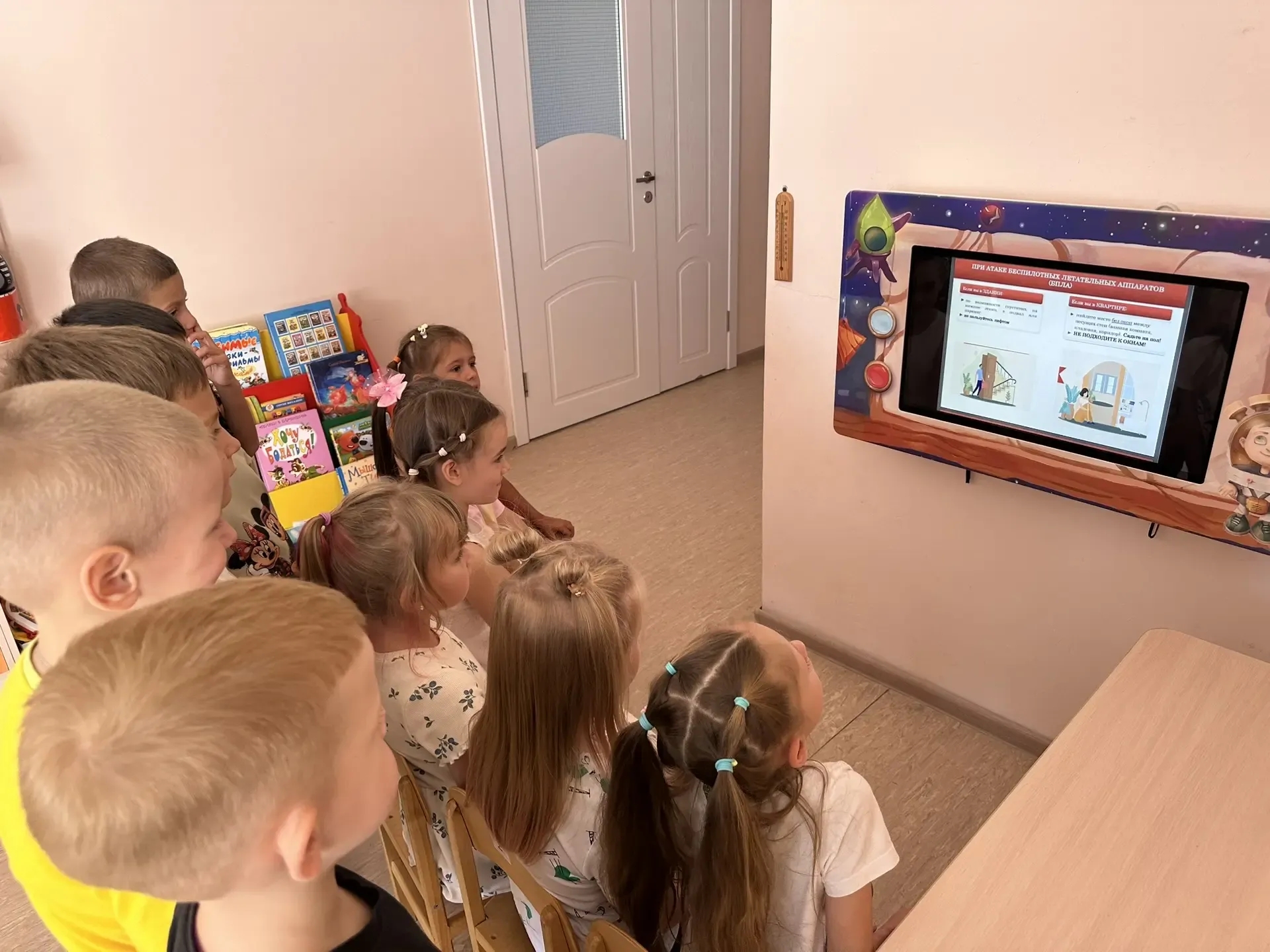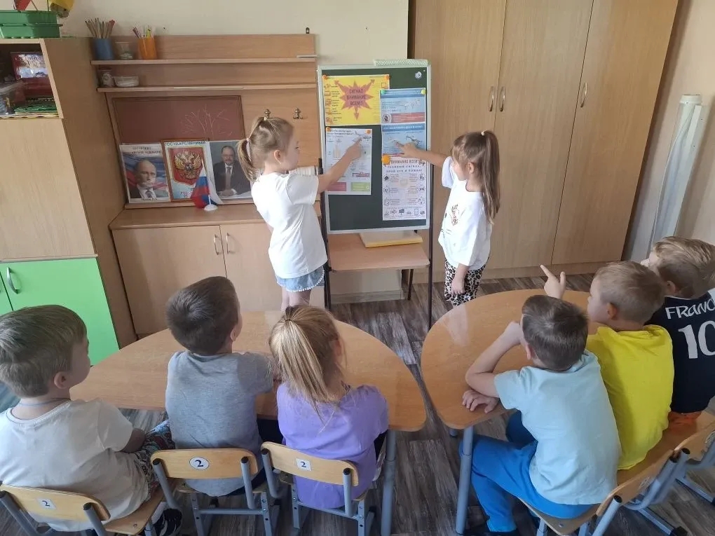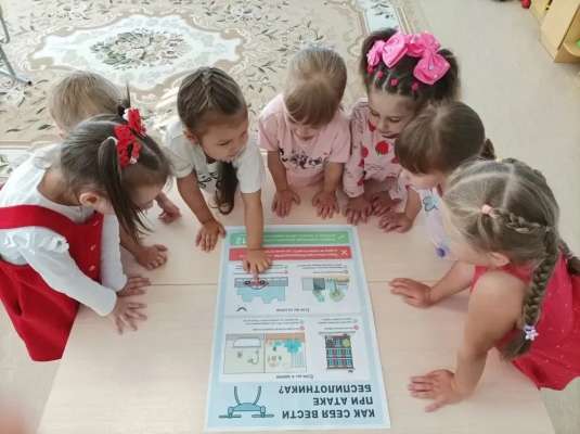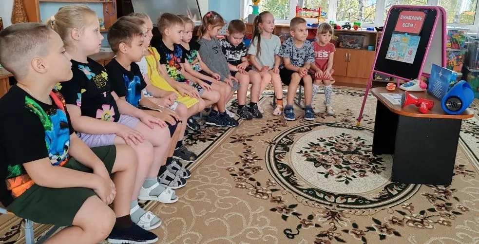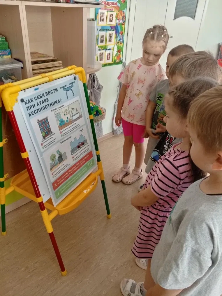 В группах прошли тематические мероприятия на тему: «Порядок действий при получении сигнала оповещения „Внимание всем!“. Воспитанники познакомились с понятием «Чрезвычайная ситуация». Узнали, какие бывают угрозы, кто помогает людям, оказавшимся в беде: что это не только сотрудники различных служб, но и специально обученные собаки – спасатели. В заключении дети повторили алгоритм действий при беспилотной, авиационной или ракетной опасности.